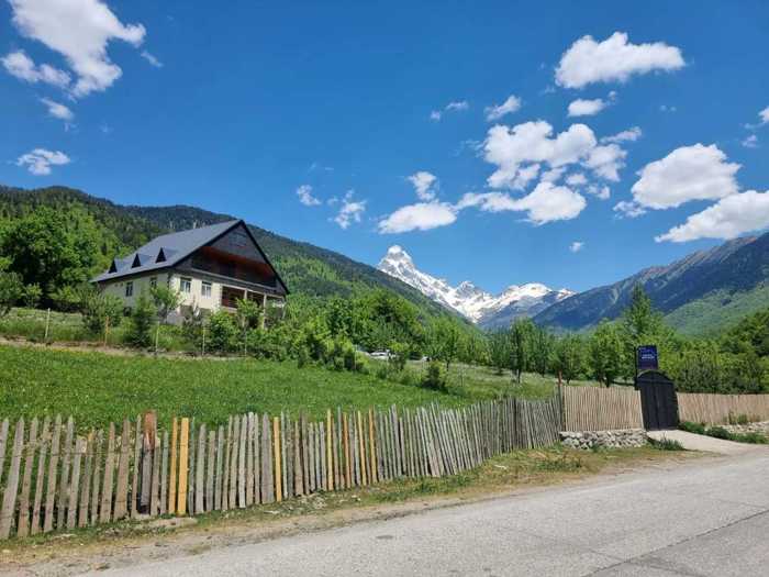 ეს შენობა თვალწარმტაც ბუნებაშია გაშენებული, საიდანაც უშბისა და ლაილას მთების პეიზაჟები იშლება. სასტუმრო წლების განმავლობაში წარმატებით ფუნქციონირებდა მაისიდან ოქტომბრამდე, თუმცა მისი სრულად დატვირთვა მთელი წლის განმავლობაში შესაძლებელია. 3200 მ²ს ეზოში განთავსებულია 663 მ² ოთხსართულიანი შენობა. პირველი და მეორე სართულები სრულად დამთავრებული და ამუშავებული. პირველ სართულზე განლაგებულია დიდი მისაღები ბუხრით, სამზარეულო, 2 ნომერი და 1 სველი წერტილი. მეორე სართულზე 7 ნომერია 2 სველი წერტილით. პირველი და მეორე სართულების მთავარი ღირსშესანიშნაობაა დიდი, 30 კვადრატული მეტრის ვერანდები. მესამე სართულზე 6 დიდი ნომერია ინდივიდუალური სველი წერტილებით და მიყვანილია თეთრი კარკასის კონდიციამდე. მესამე სართული მზა აივნებით გამოირჩევა, რაც მას კიდევ უფრო მიმზიდველს ხდის. მეოთხე სართული თავისუფალი დაგეგმარებისაა, რაც მფლობელს შესაძლებლობას აძლევს, სივრცე საკუთარი სურვილისამებრ მოაწყოს. სასტუმროს განსაკუთრებულ მყუდროებასა და ესთეტიკას სართულების სხვადასხვა სიმაღლის ჭერები ანიჭებს, რაც სივრცის შეგრძნებას კიდევ უფრო აძლიერებს. პირველი სართულის ჭერის სიმაღლე 2.90 მეტრია, მეორის 3.0 მეტრი, მესამის 3.30 მეტრი, ხოლო მეოთხე სართული ყველაზე მაღალი ჭერით გამოირჩევა, რაც მას განსაკუთრებულ ელფერს სძენს. ეზოში გაშენებულია 70 ხეხილის ხე, რომლებიც სეზონურად ყვავის და იძლევა ნაყოფს. 15 ფიჭვი და 20 არყის ხე ელეგანტურობასა და სილამაზეს მატებს ისედაც წარმტაც გარემოს. ეს ულამაზესი ბაღი ბუნებასთან ჰარმონიული და მყუდრო სივრცეა და სტუმრების საყვარელი ადგილიც, სადაც სიმშვიდესა და სვანეთის სუფთა ჰაერში განტვირთვა შეუძლიათ. ეზოში განთავსებული კომფორტული საპარკინგე ზონა თავისუფლად იტევს 8 ავტომობილს. სვანეთი უნიკალური ადგილია ტურიზმის განვითარებისთვის. ზამთარში სპორტულ და სათავგადასავლო ტურიზმს იზიდავს, ხოლო ზაფხულში რეგიონი სავსეა მოლაშქრეებით, ალპინისტებით, ბუნების მოყვარულებით და კულტურული მემკვიდრეობის აღმომჩენებით. ეს ადგილი იდეალური არჩევანია მათთვის, ვინც ეძებს უჩვეულოდ ლამაზ და პერსპექტიულ ადგილს ტურისტული ბიზნესისთვის ან სურს, სვანეთის ამ მშვენიერ კუთხეში საოჯახო სასტუმროს საქმიანობა განაგრძოს. აქ თითოეული სტუმარი თავს განსაკუთრებულად იგრძნობს, ხოლო ინვესტორებისთვის ეს პროექტი მომგებიანი შესაძლებლობაა, რომელიც მთის კურორტზე უნიკალურ სასტუმროს ქმნის.