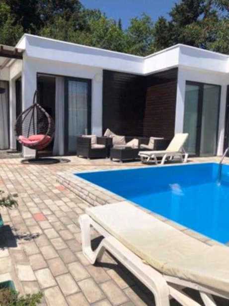დაბა წყნეთის გასაყიდად გთავაზობთ ულამაზეს თანამედროვე სახლს, რომლის ფართობია 600 კვ.მ. თბილისის ცენტრამდე 30 წუთია. მიწის ნაკვეთის ფართობი შეადგენს 1000 კვ.მ. ინტერიერის დიზაინი თანამედროვე სტილშია. მაღალი ჭერი! უზარმაზარი პანორამული ფანჯრები სახლს შუქით ავსებს. სახლის განლაგება თქვენს დასვენებას მაქსიმალურად კომფორტულს ხდის. პირველი სართული: მისაღები ოთახი 53 კვ.მ., საიდანაც შეიძლება ვერანდაზე და აუზთან გასვლა. სრულად აღჭურვილი სამზარეულო ხელმისაწვდომობის ტერასა, ორი საძინებელი, სამი სველი წერტილი. მეორე სართული: დიდი საძინებელი საკუთარი აბაზანით და დიდი საგარდერობოთ, ოთხი საძინებელი და ორი სველი წერტილი, სამრეცხაო ოთახი. ავტოფარეხი ორი ავტოსადგომით. ბრწყინვალე ხედები ტყეში! არსებობს დამატებითი ტერიტორიების შეერთების შესაძლებლობა-იმ მხრიდან, სადაც სახლი ტყეს ესაზღვრება.