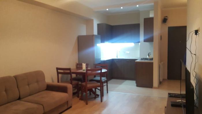 Having the pleasure to offer you the brand-new apartment in newly built Block in Vake, Razmadze Street in the city center (heart of the city and Vake), nearby the Vake Park (the biggest recreation area). The apartment is located in very quiet place with all conveniences: Inividual entrance, balcony, TV set (cable TV), internet WiFi, fridge, central heating, airconditioner, dish and washing machines, modern, comfortably furnished, alarm system and domofon. Ideal for one or two persons (couple). No Pets Allowed! ქირავდება ბინა ვაკეში, რაზმაძის ქუჩაზე, ძალიან მყუდრო ადგილას (ვაკის პარკთან ახლოს), 2 ოთახიანი, 2(9), ახალაშენებულ სახლში, (1 ან მაქსიმუმ 2 ადამიანზე), ახლადგარემონტებული, ინდივიდუალური შესასვლელით, აივნით, ბ/აირით, ცენტრალური გათბობით, კონდიციონერით, სიგნალიზაციით, დომოფონით, საკაბელო ტელევიზიით, ინტერნეტით, მაცივრით, ჭურჭლის სარეცხისა და სარეცხის მანქანით, რკინის კარით, კომფორტულად მოწყობილი ყველანაირი პირობით. ცხოველები არ დაიშვებიან!