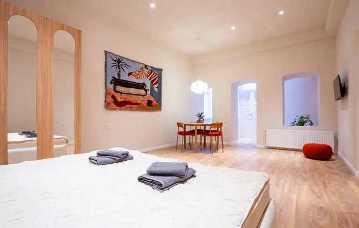 ქირავდება 55კვ.მ ბინა ანტონ ფურცელაძის #12. ცხოვრებისათვის საჭირო ნივთებითა და ტექნიკით. ბინა სტუდიოს ტიპისაა. ოთახი #1 -35 კვ. მ ოთახი დაყოფილია სამზარეულოდ და მისაღებად,აღნიშნულ სივრცეშივე მდებარეობს ანტრესოლი. ამ ოთახიდან გადიხარ დერეფანში სადაც დგას დიდი გარდერობი, სარეცხი მანქანა. ცალკე გამოყოფილია სააბაზანო ოთახი, ასევე მეორე მცირე საძინებელი ორსართულიანი საწოლითა და სამუშაო მაგიდით. მცირე საძინებელი უფანჯროა. მიუხედავად ბინის ცენტრალურ უბანში მდებარეობისა, ქუჩა წყნარია.