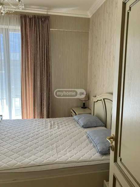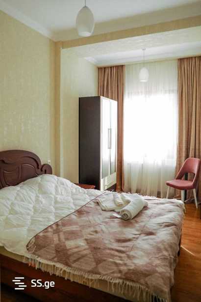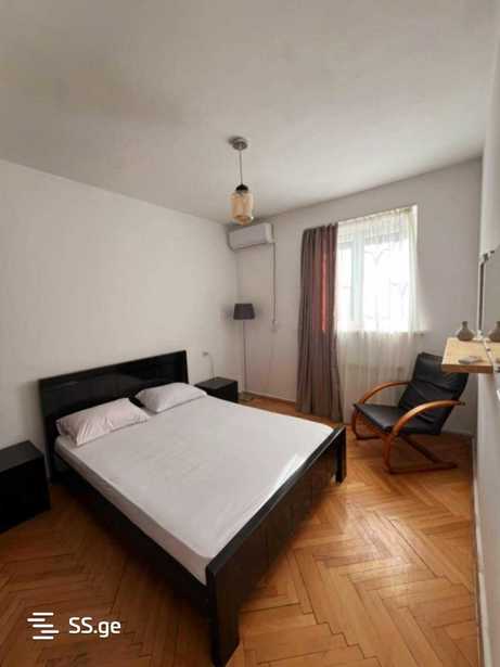ქირავდება არასტანდარტული პროექტის ბინა 80 მ² ფართობით, მდებარეობს 8-სართულიანი კორპუსის მერვე სართულზე. ბინაში არის სამი ოთახი, ორი საძინებელი, ერთი სველი წერტილი და 15 მ² ფართობის სამზარეულო, რომელიც ასევე მოიცავს სამრეცხაო სივრცეს. მისაღები ოთახი გამოირჩევა ხის იატაკით და დიდი ფანჯრებით, რაც ოთახს ნათელსა და მყუდროს ხდის. ბინას აქვს ერთი აივანი, სასადილო ოთახი და ლოჯია, სადაც შეგიძლიათ დატკბეთ მშვიდი საღამოებით. ძველი აშენებული მდგომარეობა და მყუდრო საძინებლები ქმნის განსაკუთრებულ ატმოსფეროს ოჯახური სიმყუდროვისთვის. წინასწარ 2 თვის გადახდით