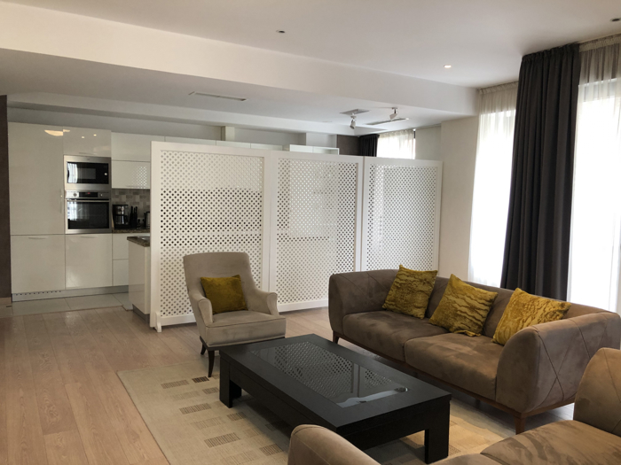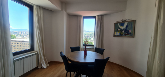 ქირავდება სამ ოთახიანი პრემიუმ კლასის ბინა, ქალაქის ცენტრალურ უბანში, პრესტიჟულ საცხოვრებელ კომპლექს "რუსთაველი რეზიდენსში", პარლამენტის შენობის მიმდებარედ. ბინა სრულადაა აღჭურვილი, უმაღლესი ხარისხის, ახალი ავეჯითა და ტექნიკით. მისაღები ოთახებიდან იშლება პანორამული ხედი თბილისზე. აქვს საკუთარი საპარკინგე სივრცე, რაც დამატებითი კომფორტია მაცხოვრებლისთვის.