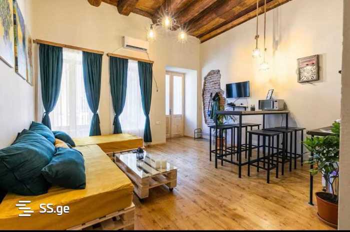 ქირავდება ან იყიდება პუშკინის 19 ნომერში, მყუდრო იტალიური ეზოს მეორე სართულზე, მანსადრული ტიპის ორსართულიანი საცხოვრებელი ფართი. 2თვის წინასაწარი გადახდით
