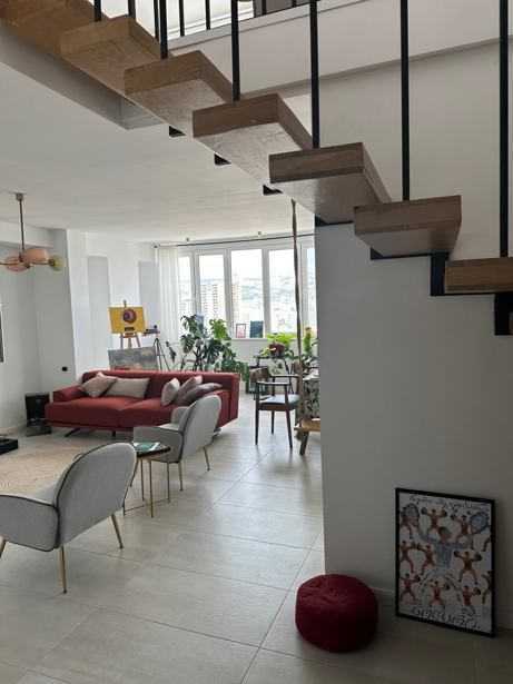 ბინა არის განთავსებული ორ სართულზე 16/17 სართული, ახალი რემონტით, უცხოვრებელი. 1 სართულზე არის 1 დიდი ოთახი, საძინებელი, სამზარეულო, სველი წერტილი. რჩება ავეჯი, სამზარეულოში ჩამონტაჟებულია ჭურჭლის სარეცხი მანქანა, არის ასევე სარეცხი მანქანა და მაცივარ. აქვს ბუხარი და იატაკის გათბობა 70,37კვ.მ. 2 სართულზე არის მუხის კიბე, მისაღები ოთახი, აივანი, მე_2 საძინებელი, გარდერობი, სველი წერტილი, ორივე სართული არის ორმაგი განათებით, არის ძალიან ნათელი და ლამაზი ხედით.(62,35კვ.მ) კორპუსს აქვს სამგზავრო და სატვირთო ლიფტები.