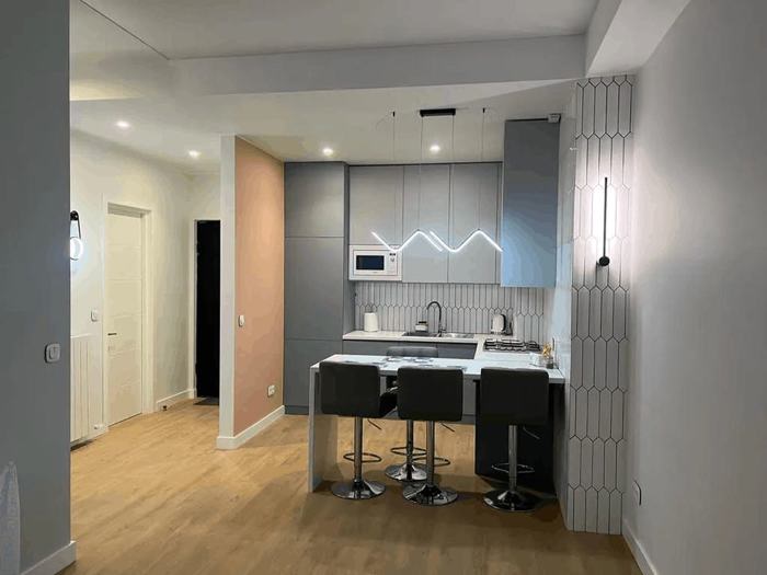 ქირავდება 2 ოთახიანი ბინა გლდანში 50 კვ.მ. ახმეტელის მეტროსთან ახლოს ახალ კორპუში გარემონტებული ავეჯით და ტექნიკით ფასი 1000 ლარი