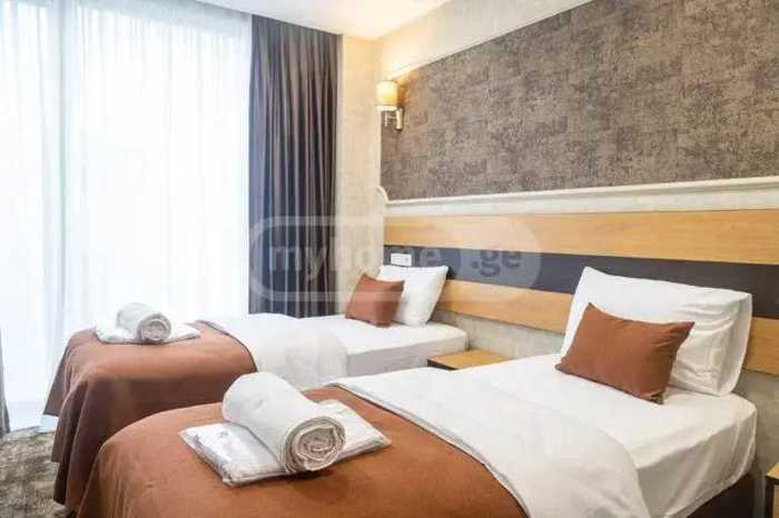 იყიდება ან ქირავდება უძრავი ქონება საბურთალოზე,სიმონ.ჩიქოვანი ქ.მე-10-11 სართული. მე-10 სართულზე (300კვ) განთავსებულია 8 ოთახი ჰოლით და რესეფშენით.ყველა ოთახს აქვს ვერანდები. მე-11,ბოლო სართულზე (200კვ) მთლიანად ვერანდა. ამჟამად მუშაობს სასტუმროდ. შეფასება აქვს 9.4 რემონტი გაკეთებულია უმაღლესი ხარისხის მასალით,ასევე ინვენტარი:ავეჯი,მატრასები,ტელევიზორები,ტელეფონები,ყველა ოთახში მინი მაცივრები,(Midea). ჭერში ჩამონტაჟებული კონდიციონერები (midea) სველ წერტილებში (Grohe) სანტექნიკა. ასევე დამონტაჟებულია წყლის 3 ტონიანი ავზი.ასევე წყლის წნევის მარეგულირებელი რომ ყველა ოთახში ერთ დროულად ერთ დონეზე მოდიოდეს წყალი.ასევე ბოილერი რომელიც უზრუნველყოპს გათბობა-გაგრილებას.მიწისქვეშა საპარკინგე 4 ადგილი. გაყიდვის ფასი 950000 $ ქირის ფასი 5800 $ თვეში.