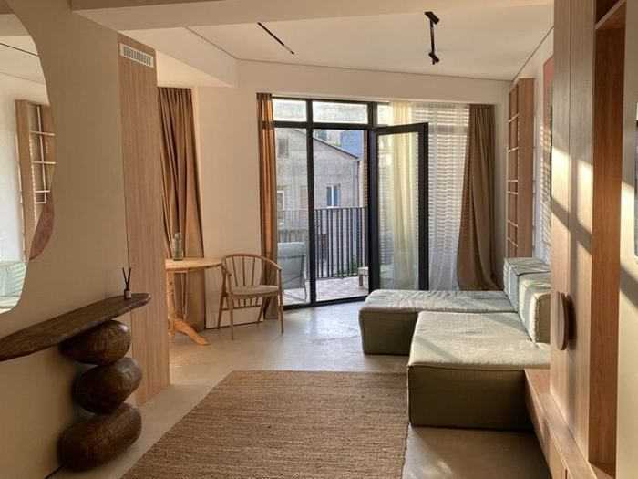 ქირავდება ახალი აშენებული, არასტანდარტული პროექტის ბინა 55 კვ.მ ფართობით. ბინა მდებარეობს 4-სართულიანი კორპუსის მე-3 სართულზე და შედგება 2 ოთახისგან, რომელთაგან ერთი საძინებელია. ბინას აქვს ერთი აივანი, რომელიც დამატებით კომფორტს და სიმყუდროვეს ქმნის. ახალი გარემო და თანამედროვე დიზაინი უზრუნველყოფს მყუდრო და სასიამოვნო ატმოსფეროს. იდეალურია მათთვის, ვინც აფასებს სიმშვიდესა და კომფორტს ქალაქის პირობებში.