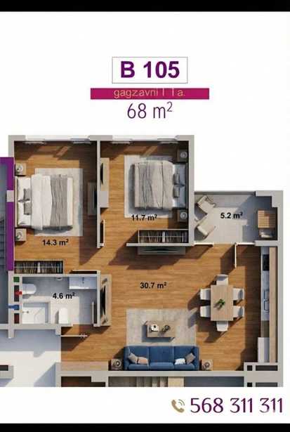 ქირავდება 2 ოთახიანი ბინა დიდ დიღომში