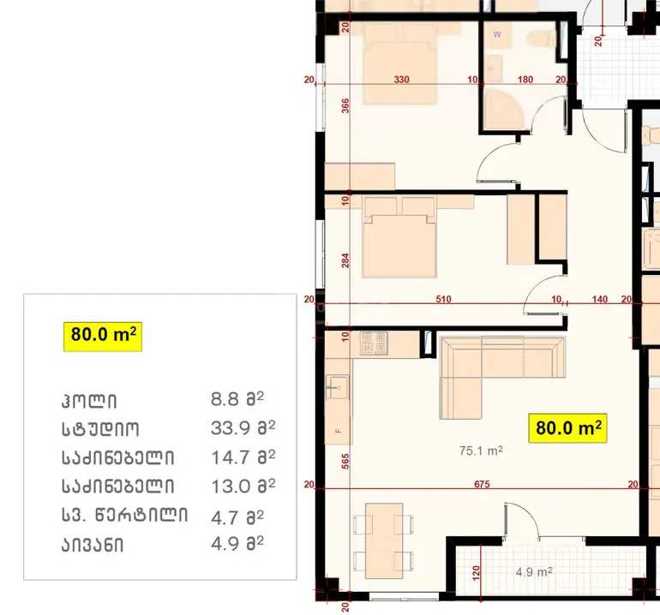 ბინა მდებარეობს ახლად აშენებულ "ჯარის ქალაქში" (Army City). ფართი -80მ². 3 ოთახი (2 საძინებელი). ყველა კომუნიკაცია შეყვანილია.