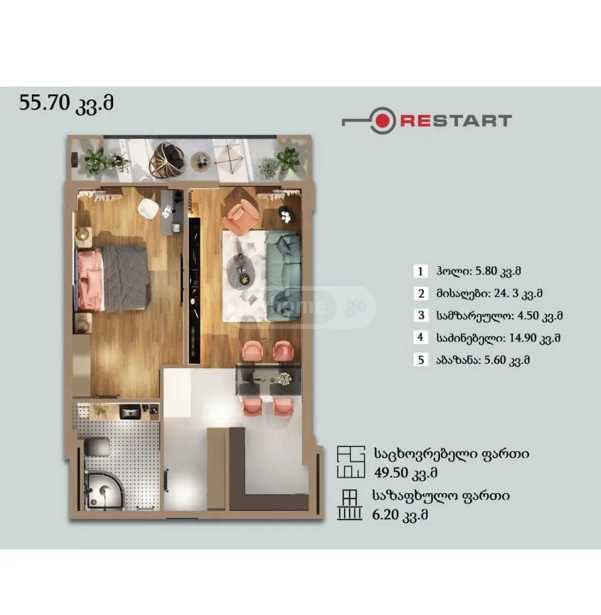 ქირავდება 2 ოთახიანი ბინა ავჭალაში