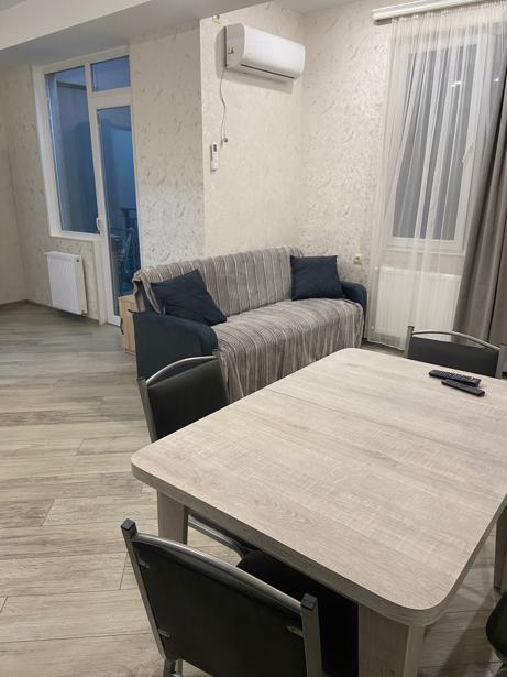 ქირავდება ერთსაძინებლიანი სტუდიოს ტიპის ბინა დიდი აივნით ახალაშენებულ კორპუსში. ბინა არის გარემონტებული, ახალი ავეჯით და ახალი ტექნიკით. ბინაში არის ცენტრალური გათბობა, კონდიციონერი, ყველა საჭირო ნივთი. ბინა მდებარეობს საცხოვრებლად კომფორტულ ადგილას, მეტრო ვარკეთილთან 300 მეტრში