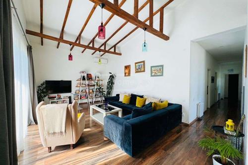 გადაწვდილი სამსართულიანი სახლი ხეხილის ხეებით ნაკვეთზე. თქვენ გელით ხის ჭერი, რომელიც დამატებით კომფორტს აძლევს, ლამაზი ტერასა, 6 საძინებელი, ცალკე სამზარეულო და სტუმრების მისაღები ოთახი.