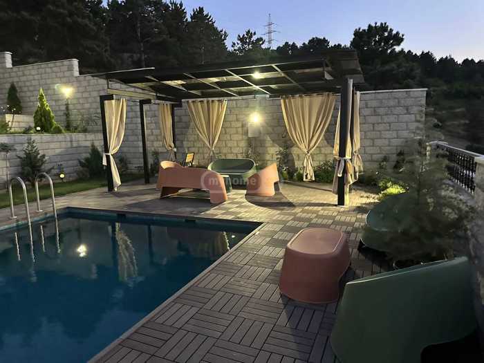 იყიდება კერძო სახლი ახალი აშენებილი ულამაზესი ხედებით გამწვანებული ეზო ავტოფაეხი. ორი შესასვლელი, აღჭურვილია კამერებით.სახლი არის ორმაგად შეფუთული 1.) თბოიზოლაციის პანელები 2) აგურის ფასადი.სახლშიარის 4 მასტერ ბედრუმი 1დიდი მისაღბი 1 პატარა მისაღები 5სველი წერტილი, სამზარეულო, სამრეცხაო და საკუჭნაო ოთახები. აუზი გათბობით, მიმდინარეობს სარემონტო სამუშაოების დასკვნითი ეტაპი, სახლი ჩაგბარდებათ ოქტომბრის ბოლოს მცირედი დეტალების გათვალისწინებით ავეჯი, ტექნიკა, განათება.