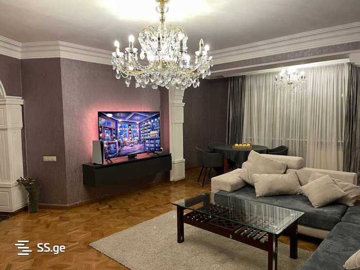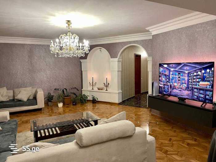 ქირავდება ახალი აშენებული, არასტანდარტული პროექტის ბინა, რომელიც მდებარეობს 9-სართულიანი კორპუსის პირველ სართულზე. ბინის საერთო ფართობი შეადგენს 150 კვ.მ-ს და მოიცავს 6 ოთახს, მათ შორის 3 საძინებელსა და ერთ აივანს. ბინა გამოირჩევა თანამედროვე დაგეგმარებითა და ახალი მდგომარეობით, რაც უზრუნველყოფს კომფორტულ