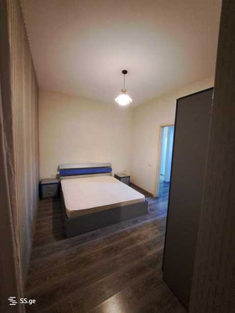 ქირავდება ახალი აშენებული, არასტანდარტული პროექტის ბინა 90 კვ.მ ფართობით. ბინა მდებარეობს 12-სართულიანი კორპუსის პირველ სართულზე და შედგება 3 ოთახისგან, რომელთაგან 2 არის საძინებელი. ბინაში არ არის აივანი, რაც უზრუნველყოფს მეტ სიმყუდროვეს და უსაფრთხოებას. ახალი გარემო და თანამედროვე დიზაინი ქმნის კომფორტულ ატმოსფეროს ყოველდღიური ცხოვრებისათვის. ფართო ოთახები იდეალურ