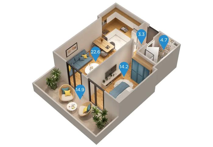 იყიდება ბინა ახალაშენებულ, არასტანდარტულ პროექტში, რომელიც მდებარეობს 9-სართულიანი კორპუსის მეოთხე სართულზე. საერთო ფართობი შეადგენს 60 კვ.მ-ს და მოიცავს 3 ოთახს, მათ შორის 2 საძინებელს. ბინას აქვს ერთი აივანი, რომელიც უზრუნველყოფს დამატებით სივრცეს დასასვენებლად. ნათელი ინტერიერი ქმნის მყუდრო და სასიამოვნო ატმოსფეროს. ბინა იდეალურია მათთვის, ვინც ეძებს კომფორტულ და თანამედროვე საცხოვრებელს ქალაქში. აქ შეგიძლიათ შექმნათ თქვენი ახალი სახლი მშვიდ და უსაფრთხო გარემოში.