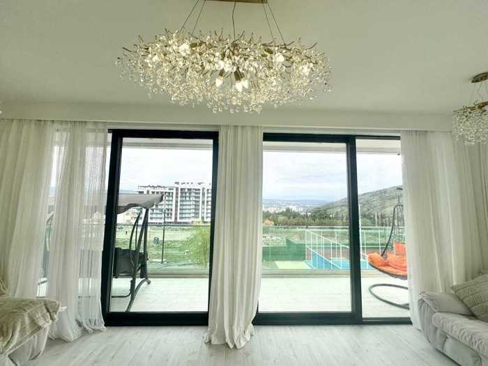 იყიდება პენტჰაუსი კრწანისი რესორტ რეზიდენსის დასრულებულ პრემიუმ კლასის კომპლექსში, ულამაზესი ხედებით მთელ ქალაქზე, აუზზე და კრწანისის მთებზე, ბინა არის ნათელი, მაღალი ჭერით, თბო და ხმის იზოლაციით უზრუნველყოფილი, შენობა მოპირკეთბულია ბუნებრივი ქვით. თავისუფლების მოედნიდან 5 წუთის სავალ მანძილზე. ირგვლივ კეთილმოწყობილი გამწვანებული სკვერი, აუზი 25/10 ფიტნეს დარბაზი ბარი ლობი სტუმრებისათვის საკონფერენციო დარბაზი, ჩოგბურთის მოედანი, სპორტული მოედნები , ველობილიკები, საცხენოსნო საჯინიბო მოედანი, კვადრო ტურები, 24 სთიანი დაცვა. კომპლექს ემსახურება მენეჯერი, ტექნიკური ჯგუფი, კონსიერჟი და ა.შ. დაინტერესების შემთხვევაში დაგვიკავშირდით. აქტივობები: 45მ*10მ მეტრიანი აუზი ყვითელი ქვიშის სანაპიროთი და ზღვის ტალღებით სკოლა-ბაღი; კაფე-ბარები და ჰიპერმარკეტი; დახურული და ღია საცურაო აუზები; ფიტნეს დარბაზები; ჩოგბურთის კორტები; ფეხბურთის, კალათბურთისა და ქვიშის ფრენბურთის მოედნები; გოლფის მოედნები; ბოულინგ ცენტრი და საბილიარდო; სადეგუსტაციო ღვინის მარანი; საფეხმავლო და ველო ბილიკები; საჯინიბო. სერვისები: • 24/7 დაცვის მომსახურება; • ვიდეო კონტროლი; • ტერიტორიის და აუზების მოვლა-დასუფთავება; • ტერიტორიის გამწვანება და მოვლა-პატრონობა; • კონსიერჟის სერვისი; • დახურული და ღია ვერანდები, გათბობის და გაგრილების ტექნიკური ოთახები; • ფინური კომპანია Kone-ს პანორამული ლიფტები; • კომპანია Schüco -ის ალუმინის კარ-ფანჯარა Roto-ს შიდა მექანიზმით; • დაბალემისიური მინები.