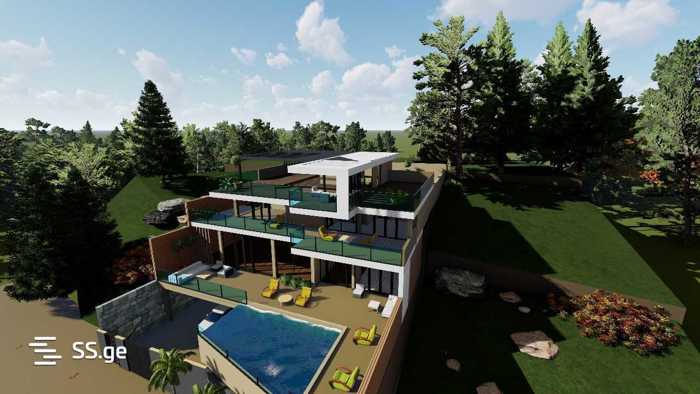 იყიდება თბილისში, არასასოფლო-სამეურნეო დანიშნულების მიწაზე, პრესტიჟულ ადგილას (კაკლებში- თბილისის ცენტრიდან 9 კილომეტრში), მშენენებარე 3 სართულიანი კერძო სახლი. სახურავზე იდეალურად მოეწყობა ე.წ. ზამთრის ტერასა. შენობა-ნაგებობა უკვე დასრულებულია და მიმდინარეობს გარე ფასადის მოპირკეთება. სახლი მშენებლობის საბოლოო დასრულება და ჩაბარება (შავი კარკასი) იგეგბემა მიმდინარე წლის ივნისში. უძრავი ქონების აღწერა: მიწი ნაკვეთი - 704 კვ.მ შენობის საერთო ფართი- 904.4 კვ.მ მათ შორის: საცხოვრებელი ფართი - 438.1 კვ.მ ავტოსადგომის ფართი - 91.1 კვ.მ საზაფხულო ფართი - 375.2 კვ. პროექტის მიხედვით შენობლობის ფართი მოიცავს: 1 სართული: ავტოფარეხი 4 მანქანაზე, ტექნიკური ოთახი, სველი წერტილი, დამხმარე სათავსო 2. სართული:მისაღები ოთახი (70 კვ.მ); სამზარეულო -21 კვ.მ; სველი წეტილი -8 კვ. მ ; დამხმარე ფართი (კოლიდორი) და ტერასა/აუზი 3. სართული:1 მასტერ ბედრუმი და 3 საძინებელი (თავისი სველი წერილით), საკუჭნაო ოთახი; 4. სართული (სახურავი)- იდეალურია ე.წ. „წამთრის ბაღის“ მოსაწყობად სახლი შენდება არასასოფლო-სამეურნეო დანიშნულების მიწაზე, შესაბამისად მისი შეძენა შეუძლია არარეზიდენტსაც (უცხოეთის მოქალაქეს) ასევე შესაძლებელია თუ მსურველს ექნება იქონიოს დიდი ეზო დავუმატოთ მომიჯნავე მიწა 725 კვ.მ (ს/კ 01.20.01.175.005). ამ შემთხვევასი შესაძენი ღირებულება იქნება 1,700,000 აშშ დოლარი. მშენებლობა არის უკვე დასასრულისკენ. ჩასმულია ვიტრაჟები და ეხლა კეთდება კედლების დათბუნება და შეღებვა. დასრულდება სავარაუდოდ 1-2 თვეში.