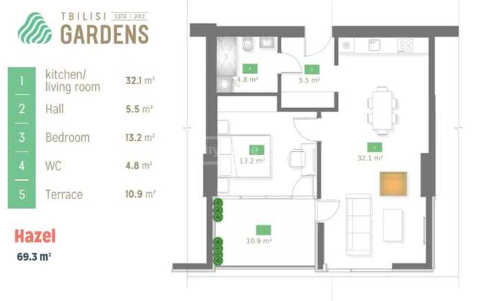 Tbilisi Gardens / თბილისი გარდენს იყიდება 2 ოთახიანი (Hazel - თეთრი კარკასი) თბილისი გარდენს მე-3 ბლოკში - ხედით ვაჟა-ფშაველას ქ.-კენ: Hazel - 69,3მ² ფასი: 3500$ თანამედროვე, პრემიუმ კლასის საცხოვრებელი კომპლექსი კარგად განვითარებული ინფრასტრუქტურითა და მაღალი დონის უსაფრთხოებით იდეალურია კომფორტული ცხოვრებისთვის თბილისის ცენტრში. კომპლექსის უპირატესობები: - დახურული, უსაფრთხო, დაცული ტერიტორია (24/7 დაცვა) - დახურული შიდა აუზი (ოლიმპიური / საბავშვო); - სპორტული მოედნები (ფეხბურთი / კალათბურთი); - სრულად აღჭურვილი სპორტული დარბაზი; - ელეგანტური ლობი კონსიერჟის სერვისით; - შეხვედრებისა და მოლაპარაკებების ოთახი; - დიდი რეკრეაციული სივრცე გამწვანებული ზონებითა და დასაჯდომი ადგილებით, საბავშვო სივრცე. მშვიდი საცხოვრებელი გარემო და მაღალი დონის ინფრასტრუქტურა.