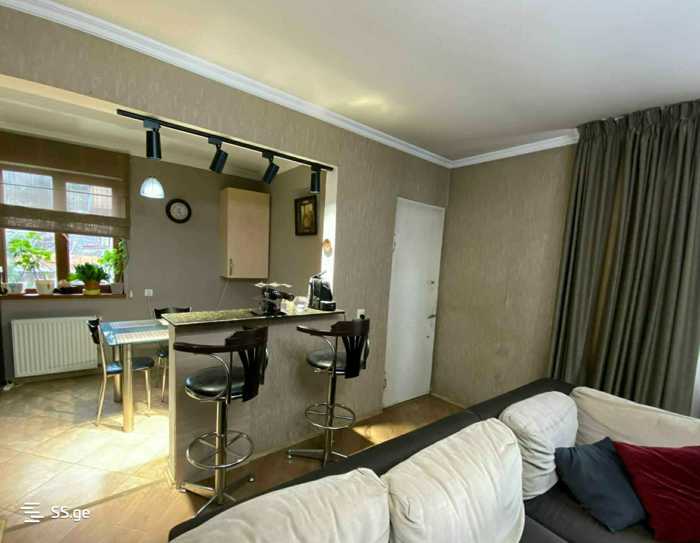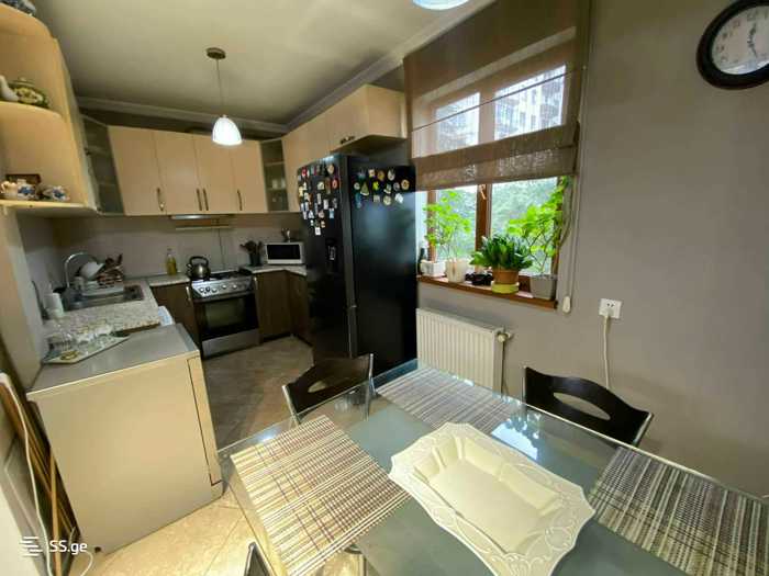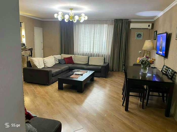 იყიდება 3 ოთახიანი 100კვმ ნათელი ბინა 2 საძინებლით, ერთს აქვს პატარა საგარდერობე ოთახი. ყველა ოთახს აქვს ძირითადი განათება. ბინაში არის ცენტრალური გათბობა. მისაღები ოთახი საკმაოდ დიდია, რომელსაც აქვს პატარა აივანი. ოთახებს შორის არის გამჭოლი კაბინეტი. ბინაში რჩება ყველა ჩაშენებული კარადა, სამზარეულო, საძინებელი (სურვილის შემთხვევაში რჩება საკმაოდ კარგი ხარისხის ორსართულიანი საწოლი) ბინას ასევე მოყვება სადარბაზოში ჩაშენებული რკინის დიდი სათავსო. კორპუსთან ახლოს არის სკოლა, ბაღი, აფთაქი და მარკეტები. რემონტი არ არის ახალი, თუმცა რამოდენიმე წლის გაკეთებულია და იცხოვრება უპრობლემოდ.