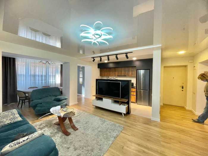ვაკე. რუსთაველი. ირ. აბაშიძის 10. ქირავდება მე-5 სართული, 200 m2, 3 საძინებელი, მისაღები, სტუდიო-სამზარეულო, 2 აივანი, 3 სველი წერტილი შხაპით, ახალი რემონტით, ყველა საჭირო ავეჯი ტექნიკით. მიშააგენტი გაზქურა, ღუმელი, მიკროტალღური, მაცივარი, სარეცხი მანქანა. კონდიციონერი, TV, რბილი ავეჯი, საძინებელი ავეჯი. მოიჯარეები: 1-6. შინაური ცხოველები: შეთანხმებით. 6 თვე, 12 თვე. 1400$ + დეპოზიტი 1400$ | 0% საკომისიო.
