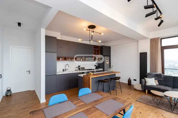 ახალაშენებულ მოწესრიგებულ კორპუსში ქირავდება 3 ოთახიანი, გამჭოლი, საუკეთესო მასალებით ახალგარემონტებული და დიზაინში შესრულებული ბინა, კეთილმოწყობილი ყველა საჭირო ავეჯით და ტექნიკით. ბინაში არის კონდიციონერი ყველა ოთახში, სარეცხი მანქანა, ჩაშენებული მაცივარი, ელ.ღუმელი, ჭურჭლის სარეცხი მანქანა და ა.შ. ბინას აქვს საუკეთესო ხედები ქალაქზე.