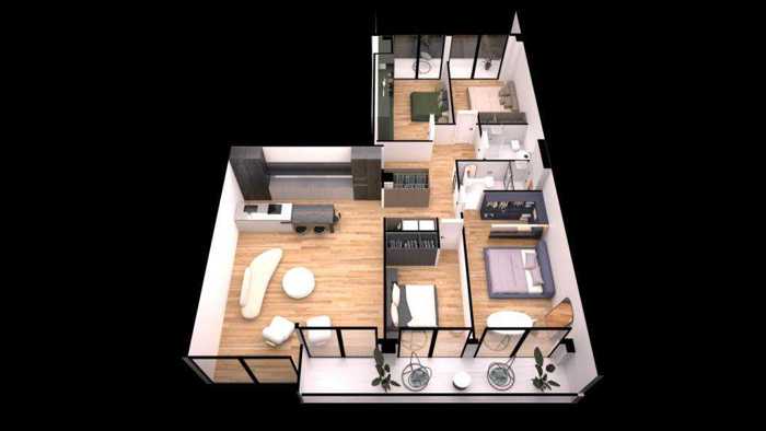 დუპლექსის ფართობია 257.4 მ2, სახურავის ფართი 106 მ2. 2 საპარკინგე ადგილით. სახლი კონტროლდება ჭკვიანი სისტემით და უსაფრთხოების კამერებით.