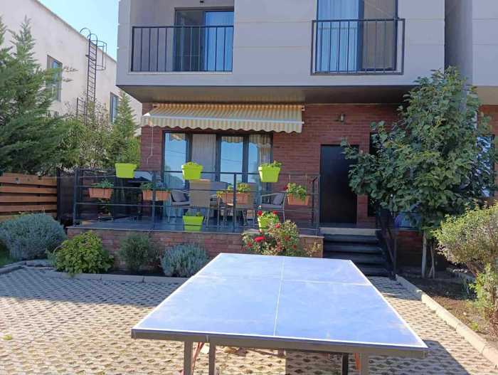 იყიდება ტანჰაუზი სახლი ლისის ტბასთან თანამედროვე ორსართულიანი სახლი მშვიდ და მწვანე გარემოში ლოკაცია: ლისის ტბა საერთო ფართობი: 154 მ² + ეზო: 225 მ² სართულიანობა: 2 სართული გეგმარება: სულ 5 ოთახი იზოლირებული სამზარეულო (16 მ²) + სათავსო ოთახი თაროებით 3 საძინებელი, მათ შორის მასტერ საძინებელი საკუთარი სველი წერტილით და გარდერობით სულ 3 სველი წერტილი მოწყობილობა და კომფორტი: ცენტრალური გათბობა 2 კონდიციონერი ინტერნეტი აივანი და დიდი ტერასა სარეცხი მანქანა ჭურჭლის სარეცხი მანქანა ღუმელი ეზოში: დიდი ბატუტი და მაგიდის ჩოგბურთი