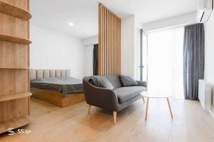 ქირავდება ახალგარემონტებული, მყუდრო 1-ოთახიანი სტუდიოს ტიპის ბინა ახალ, თანამედროვე კორპუსში. ბინა აღჭურვილია საჭირო ავეჯითა და ტექნიკით, მათ შორის ჭურჭლითაც. აქვს ცენტრალური გათბობა, კონდინციონერი და ინტერნეტი. ბინას აქვს დიდი აივანი, სადაც შეგიძლია ისიამოვნო ქალაქის ხედით და სუფთა ჰაერით. კორპუსს აქვს ლიფტი 🛗, დამაფონი 🔒, სათვალთვალო კამერების სისტემა, გამწვანებული ზონა მეოთხე სართულზე 🌿🌺 და საერთო რეკრეაციული სივრცე მე-18 სართულზე (სახურავზე) 🌇🌱