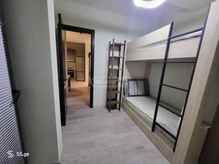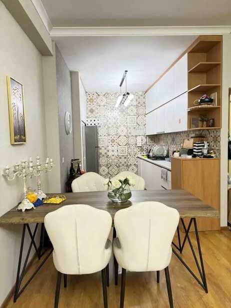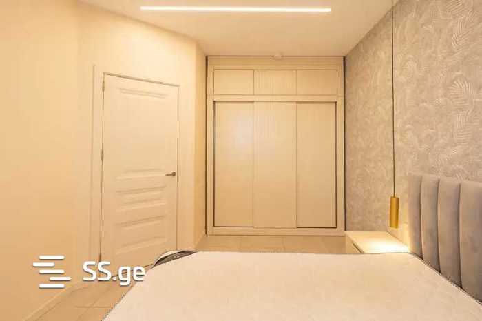 იყიდება ბინა ახალ აშენებულ კორპუსში, არასტანდარტული პროექტით. ბინის საერთო ფართობი შეადგენს 76 კვ.მ-ს და მდებარეობს მერვე სართულზე. ბინაში არის სამი ოთახი, ორი საძინებელი და სტუდიო ტიპის სამზარეულო. ბინას აქვს ორი აივანი, რაც უზრუნველყოფს ბუნებრივი სინათლისა და ჰაერის კარგ ცირკულაციას. მშვიდი გარემო და თანამედროვე დიზაინი ქმნის მყუდრო და კომფორტულ საცხოვრებელ სივრცეს.