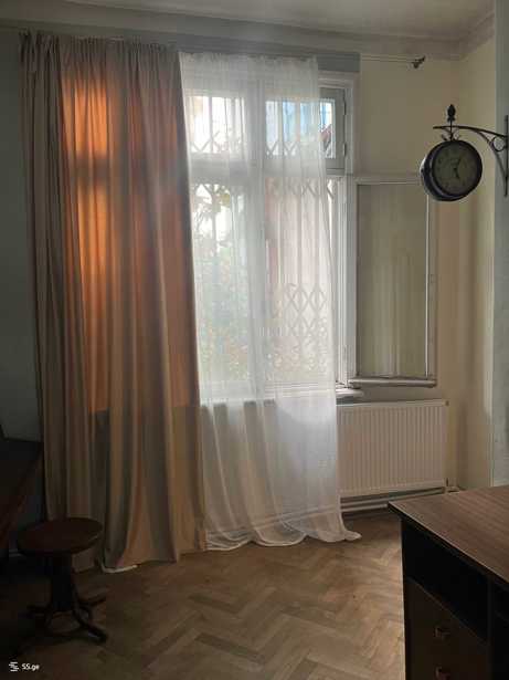 ქირავდება არასტანდარტული პროექტის ბინა ძველ აშენებულ სახლში, 110 კვ.მ ფართობით. ბინა მდებარეობს ორსართულიანი სახლის მეორე სართულზე და მოიცავს 3 ოთახს, მათ შორის 2 საძინებელს. ბინაში არის დიდი ფანჯრები, რაც უზრუნველყოფს ბუნებრივ განათებას და სიმყუდროვეს. ორი აივანი დამატებით სივრცესა და კომფორტს ქმნის. მისაღები და სასადილო ოთახი გამოყოფილია, სამზარეულო და სარეცხი ოთახი კი ფუნქციურადაა მოწყობილი. საძინებლები აღჭურვილია ჟალუზებითა და ფარდებით, იატაკი ხის მასალითაა დაფარული. აბაზანა და სველი წერტილი სარეცხი ოთახთან ახლოსაა განთავსებული. ეს ბინა იდეალურია მათთვის, ვისაც სურს მყუდრო და ნათელ გარემოში ცხოვრება.
