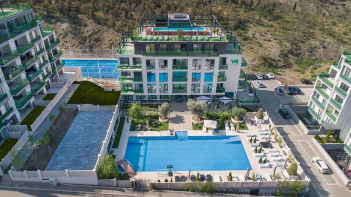 |https://my.matterport.com/show/?m=5K31n9cCxNC VR აპარტმენსი, არის პროექტი საიდანაც საოცარი ხედი იშლება კრწანისის მთებსა და თბილისზე. ჩვენი მაცხოვრებლების სიმშვიდე და უსაფრთხოება უზრუნველყოფილია სამეთვალყურეო კამერებით და დაცვის 24-საათიანი მომსახურებით. პროექტს ჰყავს კომპლექსის მენეჯერი, რომელიც ყოველდღიურ რეჟიმში დაგეხმარებათ სხვადასხვა საკითხების მოგვარებაში. საერთო მოხმარების ფართის სისუფთავესა და ნარგავების მოვლაზე ყოველდღიურად ზრუნავს ჩვენი კვალიფიციური პერსონალი. პროექტში გათვალისწინებულია ყველა პირობა თქვენი ჯანსაღი ცხოვრების წესისათვის: ორი ტიპის საცურაო აუზი, დახურული და ღია შენობის სახურავზე პროექტის პირველი სართული ეთმობა კომერციულ სივრცეებს კომპლექსის სიახლოვეს განლაგებულია ინფრასტრუქტურისთვის აუცილებელი ყველა მნიშვნელოვანი ელემენტი: საჯარო სკოლა, ქსელური სუპერმარკეტები, კლინიკები, აფთიაქები, ბანკები, საელჩოები, სამინისტროები და სარეკრეაციო ადგილები. შენობის სიახლოვეს განლაგებული მშვიდი სკვერი, რომელიც იდეალურ გარემოს ჰქმნის განტვირთვისთვის.