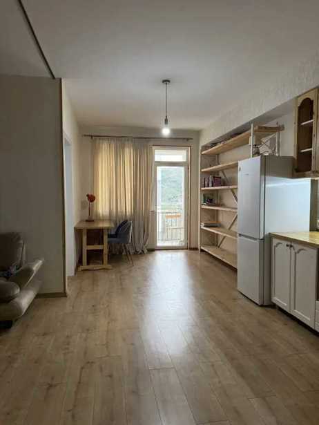 იყიდება ახალაშენებულ კორპუსში ახალი ბინა. ბინას აქვს სტუდიოს ტიპის მისაღები და ერთი ნათელი საძინებელი, მეორე საძინებლის ადგილას, რომელიც უნდა ყოფილიყო მეორადი განათებით, მოწყობილია ტელევიზორის სივრცე რბილი ავეჯით. გარე კედლები შგნიდან დამატებით ამოშენებულია აგურით, ამოტომ არასპდეს არ ინესტება და ადვილად თბება. აივანზე არის რკინის კარადა გათბობის ქვაბისთვის და სათავსოდ. შესასვლელი კარი შეცვლილია რკინის კარით. აბაზანაში არის საუკეთესო ხარისხის ჩაშენებული უნიტაზი და დუში. სპეციალურად აბაზანის ზომებზე მორგებული სარეცხის მანქნანა. მდებარეობა საკმაოდ მოსახერხებელია საზოგადოებრივი ტრანსპორტით სარგებლობისთვის - ახლოს არის 2 სხვადასხვა გაჩერებასთან.