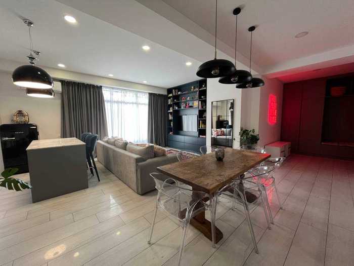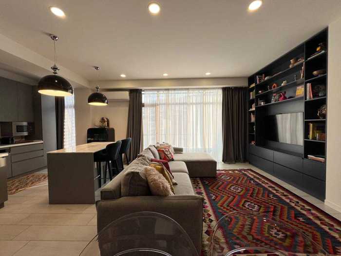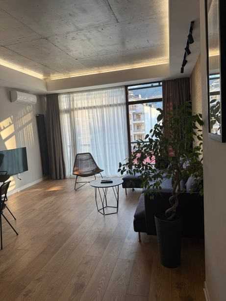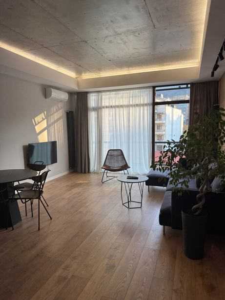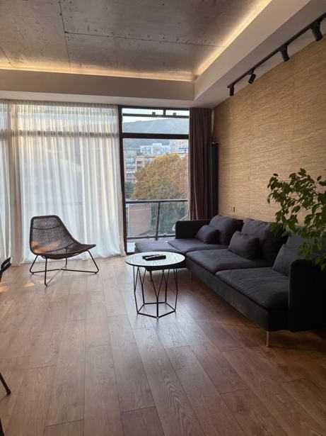ბინა არის ახალი გარემონტებული. გაშლილი დიდი სივრცე. საძინებელი ერთია ე.წ. "მასტერ ბედრუმი". ძალიან ნათელი და თბილი ბინაა. გათვლილია წყვილზე. ინტერიერი არის საკმაოდ განსხვავებული და საინტერესო. კედლების ნაწილი არის დეკორატიული ლესვით გამოყვანილი და აგურით. იატაკი არის მოპირკეთებული ბეტონით და ნაწილზე მუხის პარკეტით. სახლში არის იატაკ ქვეშა გათბობა. აბაზანებში იატაკზე გამოყენებულია მიკროცემენტი. ბინა აჭურვილია ყველა საჭირო ტექნიკით და ავეჯით. უცხოვრებელი.