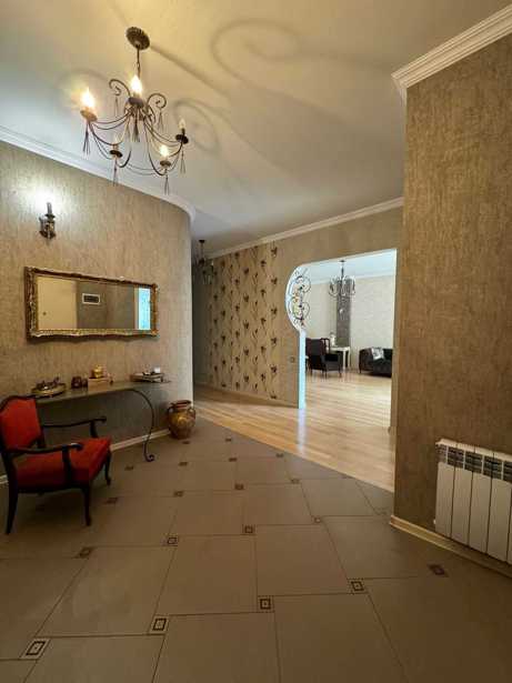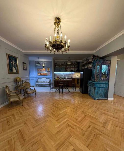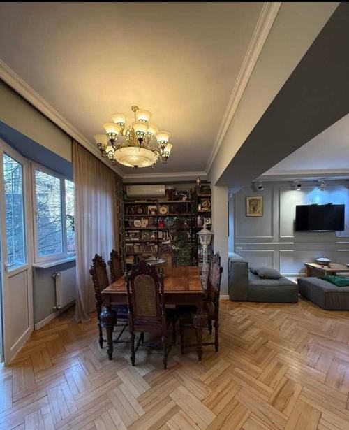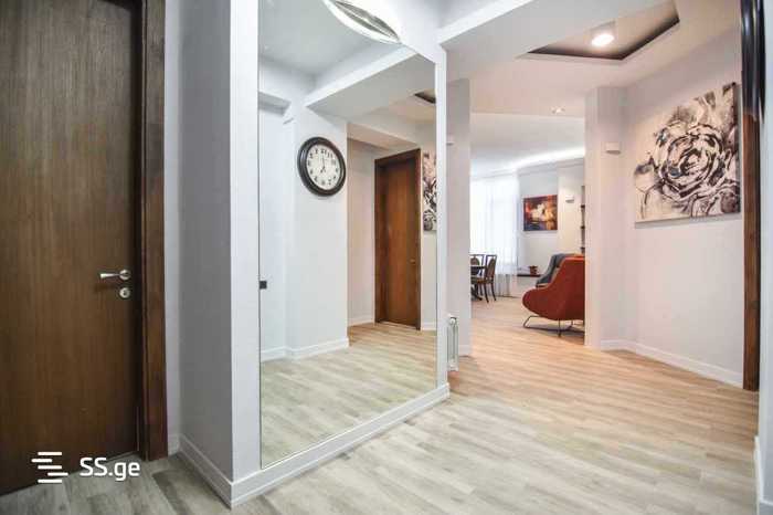 |იყიდება მრგვალ ბაღთან, დიზაინერული, მაღალჭერიანი, კუთხის გამჭოლი ბინა. ახალი რემონტით, უმაღლესი ხარისხის მასალებით, პრემიუმ კლასის ტექნიკით. ცენტრალური გათბობა, 2 კონდენციონერი, ხის პარკეტი. სამზარეულო არის ანტიკვარული ავეჯისა და „კასა ვერდეს“ მიერ დამზადებული მასიური მუხის ხის ავეჯის მიქსი. მათივე დამზადებულია ამავე მასალისგან ბიბლიოთეკის თაროებიც და აბაზანის ავეჯიც. ბინას აქვს სამი საძინებლი, 2 საძინებელს აქვს საკუთარი საგარდერობე, 1 საძინებელს დიდი ჩაშენებული კარადა. ბინაში დაქსილია ინტერნეტი და ტელევიზია ყველა ოთახში. 2 აივნით, 2 სველი წერტილით, სარდაფით, სადარბაზოში აქვს სათავსო, ეზო იკეტება შლაგბაუმით და არის პარკინგის ადგილი. დაცული სადარბაზო, 2 ლიფტი - სატვირთო და სამგზავრო.