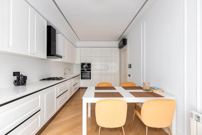 |იყიდება მრგვალ ბაღთან, დიზაინერული, ულამაზესი, მაღალჭერიანი, კუთხის გამჭოლი ბინა. ახალი რემონტით, უმაღლესი ხარისხის მასალებით, პრემიუმ კლასის ტექნიკით. ცენტრალური გათბობა, 2 კონდენციონერი, ხის პარკეტი. სამზარეულო არის ანტიკვარული ავეჯისა და „კასა ვერდეს“ მიერ დამზადებული მასიური მუხის ხის ავეჯის მიქსი. მათივე დამზადებულია ამავე მასალისგან ბიბლიოთეკის თაროებიც და აბაზანის ავეჯიც. ბინას აქვს სამი საძინებლი, 2 საძინებელს აქვს საკუთარი საგარდერობე, 1 საძინებელს დიდი ჩაშენებული კარადა. ბინაში დაქსილია ინტერნეტი და ტელევიზია ყველა ოთახში. 2 აივნით, 2 სველი წერტილით, სარდაფით, სადარბაზოში აქვს სათავსო, ეზო იკეტება შლაგბაუმით და არის პარკინგის ადგილი. დაცული სადარბაზო, 2 ლიფტი - სატვირთო და სამგზავრო. ბინაზე რეგისტრირებულია თბილისი პარკინგის უფასო პარკინგიც 2 მაქანაზე. ნებართვის გარეშე არ გადაიტანოთ განცხადება !!!!!!!!!!
