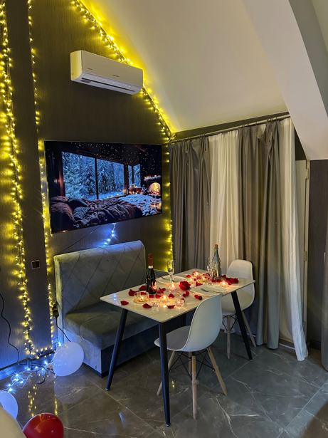 ბინა სადაც კომფორტი რომანტიულობას ხვდება, ხოლო საახალწლო ზღაპარი რეალობად ხდება. ბინაში დაგხვდებათ ჯაკუზი, დიდი ლამაზად მორთული ნაძვისხე, საახალწლო განათებები კედლებზე და გემოვნებიანი ინტერიერი, რომელიც აღგაფრთოვანებს. ბინაში დაგხვდებათ იდეალური სისუფთავე, ჯაკუზი იხეხება უმაღლესი ხარისხის ხსნარებით, ბინას აქვს ასევე აივანი, სადაც შეძლებთ მოწევას (შიდა სივრცეში მოწევა დაუშვებელია). ბინა მდებარეობს გლდანის მეტროსთან; ღამე 150 ლარი, დღე 100 ლარი, 24 საათი 190 ლარი. ფასი მოცემულია 2 პერსონაზე, მეტი ადამიანის შესვლის შემთხვევაში ფასი იზრდება.