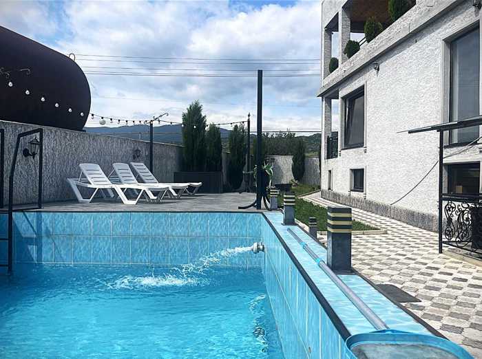 |აღნიშნულ სახლზე მოქმედებს დეკემბრის თვის აქცია, თანხის ერთიანად გადახდის შემთხევავაში ფასდაკლება. ქირავდება დღიურად აუზიანი, 3 სართულიანი კერძო სახლი გლდანში, თეთრ ტბასთან. თქვენს განკარგულებაშია 3 საძინებელი (+2), ბუხარი, ვერანდა. მის.; გიორგი ბაბილოძის 2 გ.