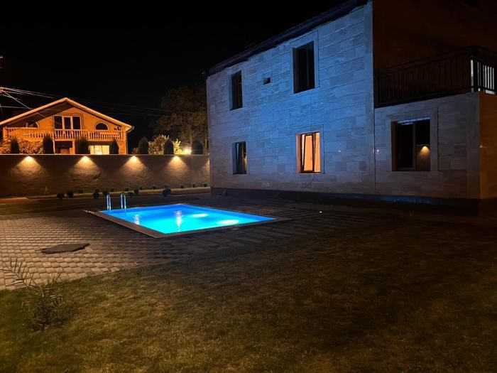 ქირავდება დღიურად კერძო სახლი თბილისის შემოსასვლელთან,ახალი რემონტით,გადახურული აუზით (35 გრადუსი), დიდი ტერასით, განათებით და დინამიკით, 3 საძინებლით,ავეჯით, ტექნიკით ცენტრალური გათბობით, წვეულებებისთვის.