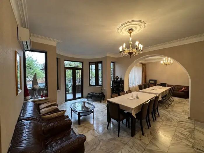 ნაძალადევის მეტროდან 7 წუთით ფეხით სავალ გზაზე, იყიდება კერძო სახლი, რომელიც აშენებულია 600 მარკის მეტროს ბეტონით მონოლითში. ფუნდამენტი დასულია კლდეზე. სახლი სრულად მოპირკეთებულია კასპის დიდი აგურით. სახლს აქვს 10 ოთახი, მათ შორის: 5 საძინებელი, 3 სველი წერტილი (მეოთხე სველი წერტილის სანტექნიკა გაყვანილი და შესაძლებელია დამატება), 2 სამზარეულო, 4 ბუხარი (აქედან ორი სრულად მარმარილოთი მოპირკეთებულია და ოთხივეში შეყვანილია ბუნებრივი აირი, შესაბამისად მუშაობს როგორც შეშაზე ისე გაზზე), ავტოფარეხი 2 დიდ ჯიპზე გათვლილი, ჩაშენებული კარადებით, სარდაფი კაპიტალურად გარემონტებული 6 ოთახით. მთელ სახლში იატაკზე დაგებულია სქელი ძვირფასი მარმარილო, მხოლოდ საძინებლებშია მუხის პარკეტი. კარ-ფანჯარა არის ყავისფერი ორმაგი მეტალოპლასტმასის. ეზოს სრული ფართია 270 კვ.მ. სადაც 1/3-ზე განთავსებულია ზამთრის ბაღი და 2 ტონიანი წყლის ავზი.