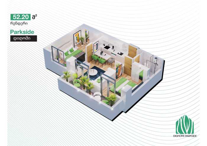 ქირავდება 2 ოთახიანი, სრულად უზრუნველყოფილი ავეჯითა და ტექნიკით ბინა დიდ დიღომში გიორგი ბრწყინვალისა და პეტრე იბერის ქუჩების კვეთაზე. ბინა არის საკმაოდ ენერგო ეფექტური, ნათელი და მყუდრო. ძალიან მოსახერხებელი ლოკაცია საცხოვრებლად, გადაასაადგილებლად როგორც ავტომობილით ასევე საზოგადოებრივი ტრანსპორტით. ახლოსაა მაღაზიები, აფთიაქები, საზ. ტრანსპორტის გაჩერებები, სკოლები და ბაღები. აგრეთვე ახლოსაა გუდვილი 850 მეტრში, დიღომი მოლი 300 მეტრში, ხოლო დიდი დიღმის ცენტრალ პარკი 200 მეტრში.წინასწარ 2 თვის გადახდით