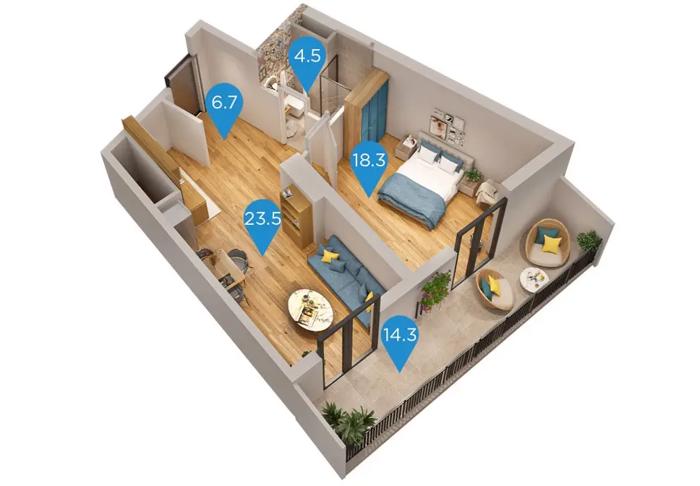 იყდება 2 ოთახიანი ბინა ღრმაღელის მეტროსთან ახლოს, არქის კომპლექსში რომელიც ბარდება 1 წელში მაქსიმუმ . აქვს ერთი საძინებელი