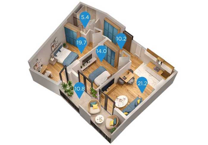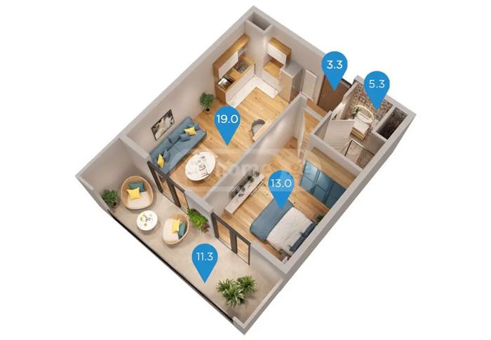 იყიდება 2 ოთახიანი ბინა მშენებარე საცხოვრებელ კომპლექსში სანზონაში ქსნის ქუჩაზე, მ/ს ღრმაღელე-ს მიმდებარედ. მრავალსართულიანი მულტიფუნქციური პროექტი მოიცავს საცხოვრებელ და კომერციულ სივრცეებს, ასევე 1 500 მ² გამწვანებულ ეზოს.