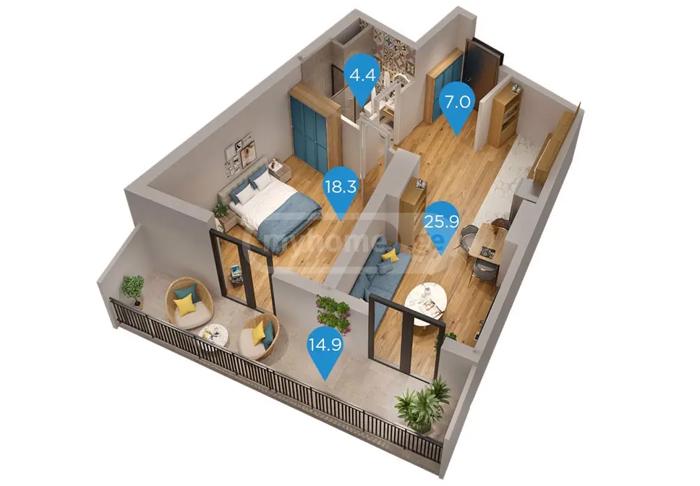 იყიდება 2-ოთახიანი ბინა მშენებარე კორპუსში იყიდება ფართო და ნათელი 2-ოთახიანი ბინა, რომელიც მდებარეობს 6-ე სართულზე. ბინა გამოირჩევა კომფორტული და პრაქტიკული განლაგებით, რაც უზრუნველყოფს მაქსიმალურ კომფორტს როგორც საცხოვრებლად, ასევე საინვესტიციოდ. 📐 საერთო ფართი: 70.50 მ² 🏠 შიდა ფართი: 55.6 მ² 🌿 საზაფხულო ფართი (აივანი): 14.90 მ² პროექტის დასრულება დაგეგმილია 2027 წლის თებერვალში. ✔️ დიდი და ნათელი ოთახები ✔️ ფართო აივანი ✔️ ფუნქციური დაგეგმარება ✔️ პერსპექტიული საინვესტიციო ვარიანტი წინასწარი შესატანი მხოლოდ 1500$ ერთიანი გადახდის შემთხვევაში ფასი 74 350$ დამატებითი ინფორმაციისთვის დამიკავშირდით.