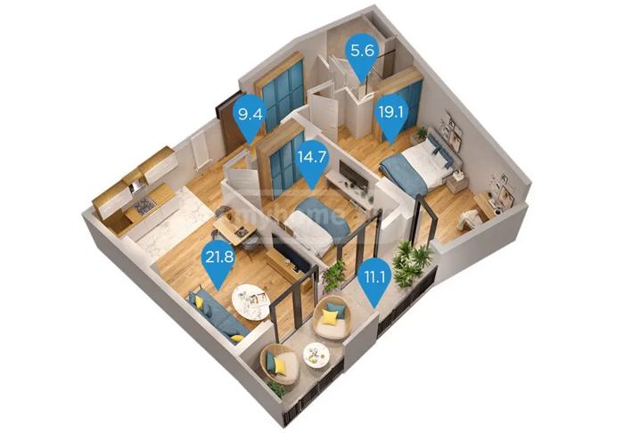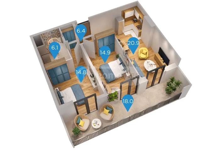იყიდება 3 ოთახიანი ბინა მშენებარე საცხოვრებელ კომპლექსში სანზონაში ქსნის ქუჩაზე, მ/ს ღრმაღელე-ს მიმდებარედ. მრავალსართულიანი მულტიფუნქციური პროექტი მოიცავს საცხოვრებელ და კომერციულ სივრცეებს, ასევე 1 500 მ² გამწვანებულ ეზოს.
