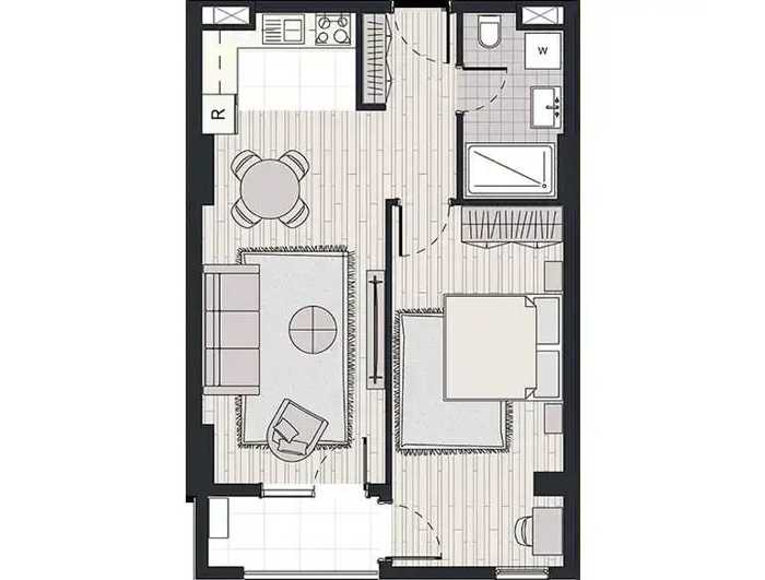 |იყიდება 59.4 კვ.მ. 2 ოთახიანი ბინა თეთრი კარკასის მდგომარეობით, მშენებარე პროექტში RiverFront Residence. საცხოვრებელი კომპლექსი მდებარეობს ნადია ხოშარაულის ქ. N29ში. პროექტი მოიცავს 2500 კვ.მ ეზოს რომელშიც 1900 კვ.მ დაეთმობა გამწვანებას, ბავშვთა გასართობ მოედანს, ორდონიანი მიწისქვეშა პარკინგს, ელექტრო დამტენებით, საოფისე და კომერციული ფართებს, სავაჭრო და კვების ობიექტებით, საერთო მოხმარების გამწვანებულ ღია ტერასას, დაცვისა და დასუფთავების მომსახურებას. მშენებლობა დასრულდება 2027 წლის სექტემბერში.