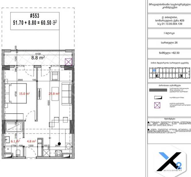 მშენებარე კომპლექსი მდებარეობს გერმანულ ჰოსპიტალთან. აშენებს X2 დეველოპმენტი. უნდა დასრულდეს 2027 წლის დეკემბერში. (იანვრიდან შეუშვებენ სარემონტოდ). ხედი ექნება წერეთლის მხარეს. ტიხრების და განლაგების შეცვლა შესაძლებელია მფლობელის სურვილისამებრ.