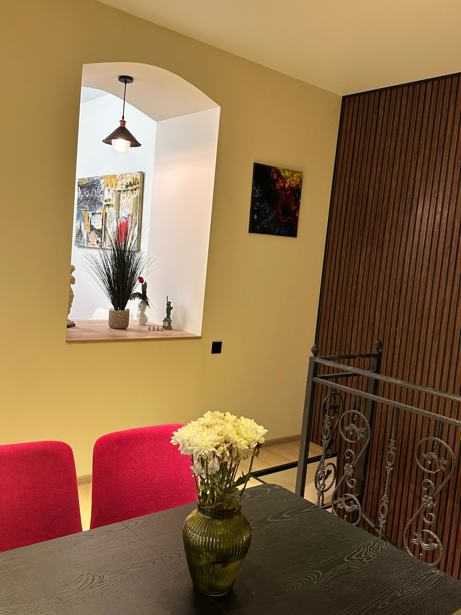 ბინა მდებარეობს აღმაშენებლის გამზირიდან მხოლოდ 1 წუთის სავალზე, 24-ე სკოლის წინ. სახლი არის სრულიად ახალგარემონტებული, უცხოვრებელი და აღჭურვილია ყველა საჭირო ჩაშენებული ტექნიკით — მათ შორის ჭურჭლის სარეცხი და საშრობი მანქანებით, ასევე აბაზანაში ჩაშენებული არის თმის საშრობი. ბინას აქვს: 🏡 2 კომფორტული საძინებელი 🚿 2 სველი წერტილი 🧺 განცალკევებული სამრეცხაო ოთახი 🍽️ ცალკე სამზარეულო და მისაღები სივრცე 🏠 კაპიტალურად მოწყობილი სარდაფი, რომლის გამოყენებაც შეგიძლიათ თქვენი საჭიროების მიხედვით ბინაში არის ყველა საჭირო ნივთი კომფორტული საცხოვრებლისთვის. სახლში განთავსებულია 3 ტელევიზორი სხვადასხვა ოთახებში. ასევე ბინას აქვს ჭკვიანი გასაღების სისტემა, რაც დამატებით კომფორტსა და უსაფრთხოებას უზრუნველყოფს.