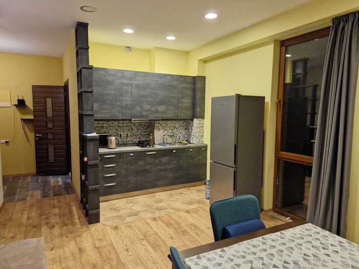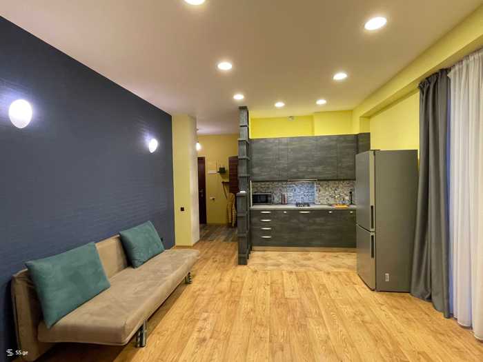 მყვდრო სტუდიო ტიპის ბინა აივნით (+1 საძინებელი თავის გარდერობით, 1 სველი წერტილი, პატარა ჰოლი). ახალი აშენებული კორპუსი. ბინა არის ახალი გარემონტებული და ახალი ტექნიკით აღჭურვილი. დახურული პირადი პარკინგი - ხედი ქუჩაზე