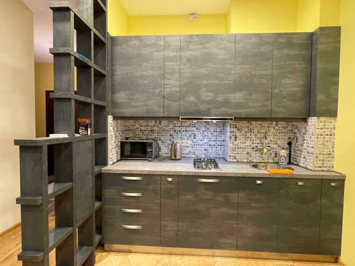 მყუდრო სტუდიო ტიპის ბინა აივნით (+1 საძინებელი თავის გარდერობით, 1 სველი წერტილი, პატარა ჰოლი). ახალი აშენებული კორპუსის მეორე სართულზე, ფანჯრები გადის გრანელის ქუჩაზე, სკვერის და ლუთერანული ეკლესიის ხედით. ბინა არის ახალი გარემონტებული და ახალი ტექნიკით აღჭურვილი.